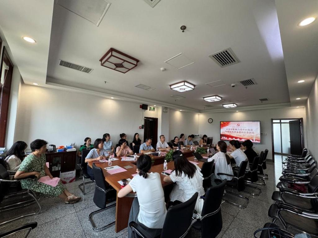 会议开始,纪洁菲介绍了图书馆及第一党支部情况,重点介绍了图书馆目前为学科建设、学者发展所做出的各项工作和服务;李英英介绍了学科办党支部情况,以及学科分析相关数据库的前期购置使用情况、存在问题和分析需求;杨峰介绍了图书馆文献资源共建共享情况;学科规划与评估主管张钰老师分享了数据库使用的相关案例;图书馆科研支持服务部副主任时莹从面向职能部门、面向学校/学院、面向战略布局、面向人才引进与评估四个方面介绍了竞争情报服务概况。